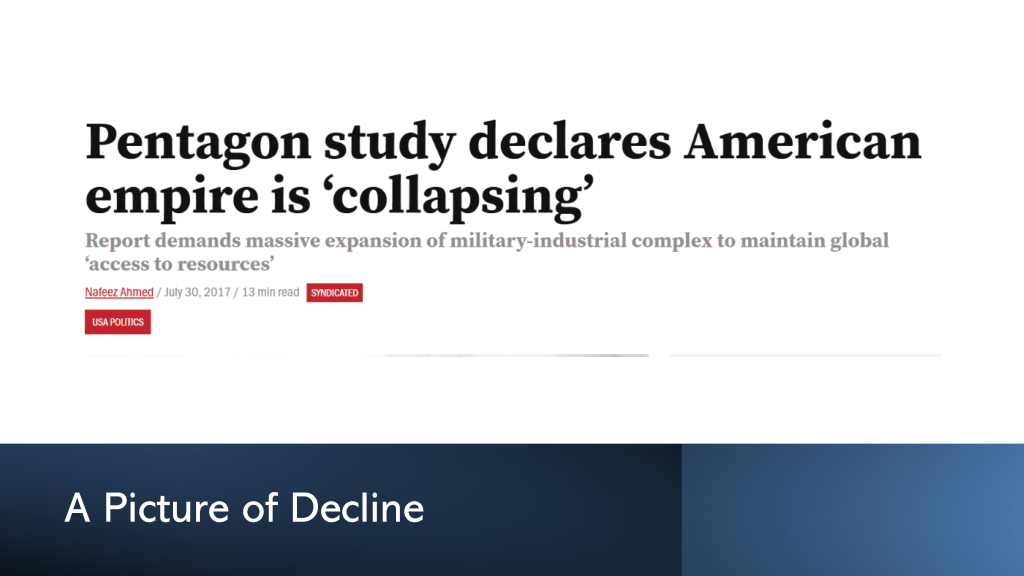 Ahmed, N. (2017, July 30). Pentagon study declares American empire is ‘collapsing’. Canadian Dimension. https://canadiandimension.com/articles/view/pentagon-study-declares-american-empire-is-collapsing
